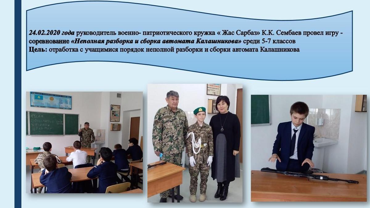 24 ақпан 2020 0 1 2 3 4 5 «Неполная разборка и сборка автомата Калашникова» Осы беттің QR-коды:QR-код этой страницы: