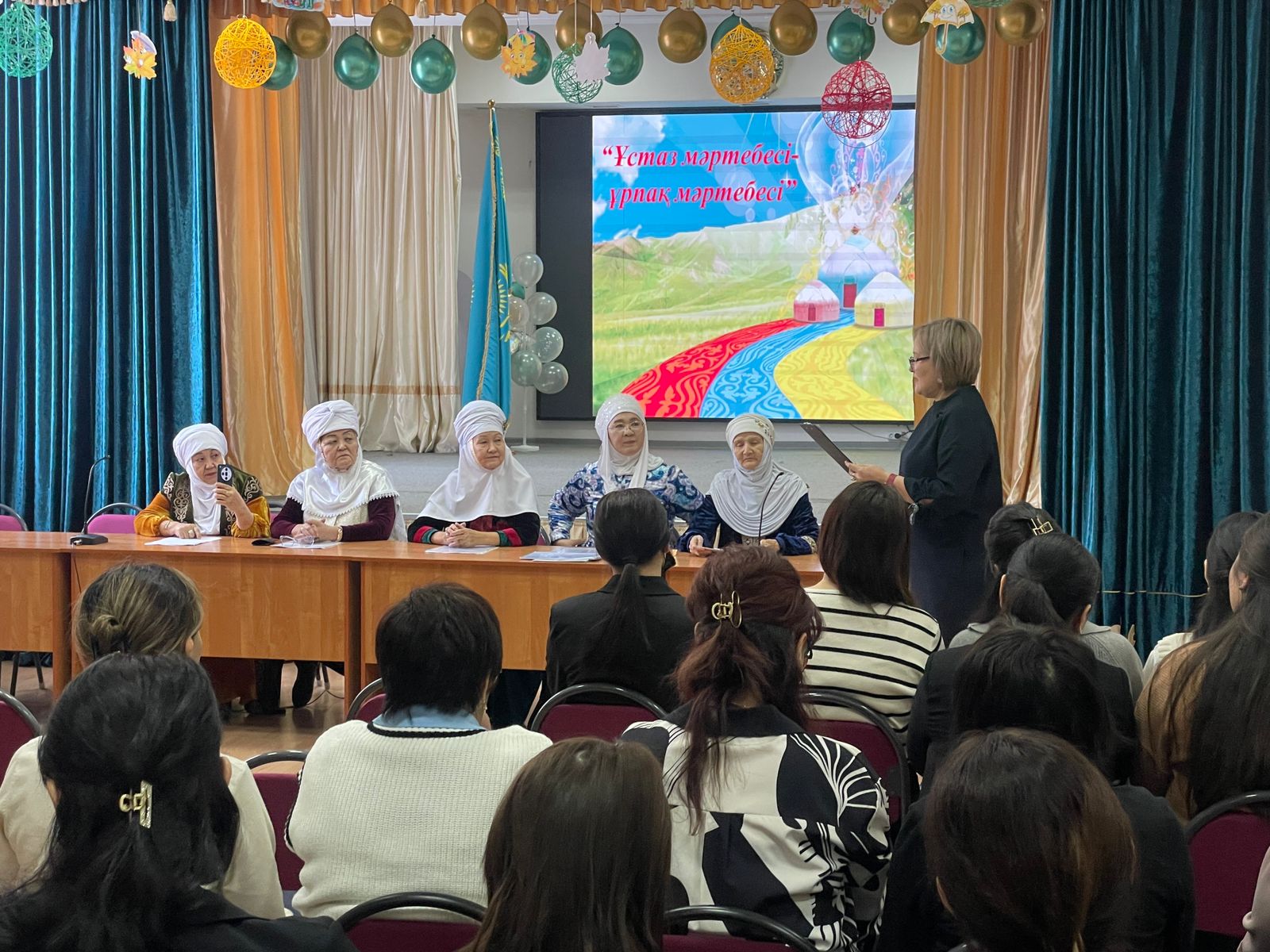 «Біртұтас тәрбие» бағдарламасы аясында мектебімізде «Қазақ аналары дәстүрге жол» РҚБ Бостандық ауданы филиалын (төреайымы Сатимбекова Күләш ханым) шақырып мектеп ұстаздарына арналған «Ұстаз мәртебесі – ұрпақ мәртебесі» атты семинар ұйымдастырылды.