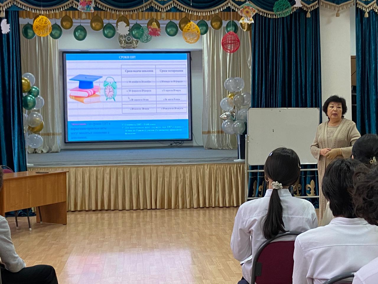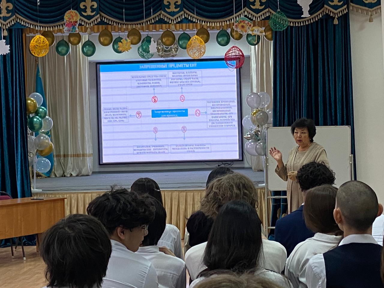 В рамках работы по подготовке выпускников к сдаче ЕНТ, 2 декабря 2024 года в ОШ №10 заместителем директора по УР Айтжановой Жамилей Айтмагамбетовной был проведен семинар для учащихся 11а, 11б классов. На семинаре выпускникам были даны разъяснения по поводу сроков сдачи, подготовке необходимых документов, условий и привелегий для учащихся. Ребятам был дан боевой настрой и мотивации для дальнейшей подготовки к сдаче ЕНТ.