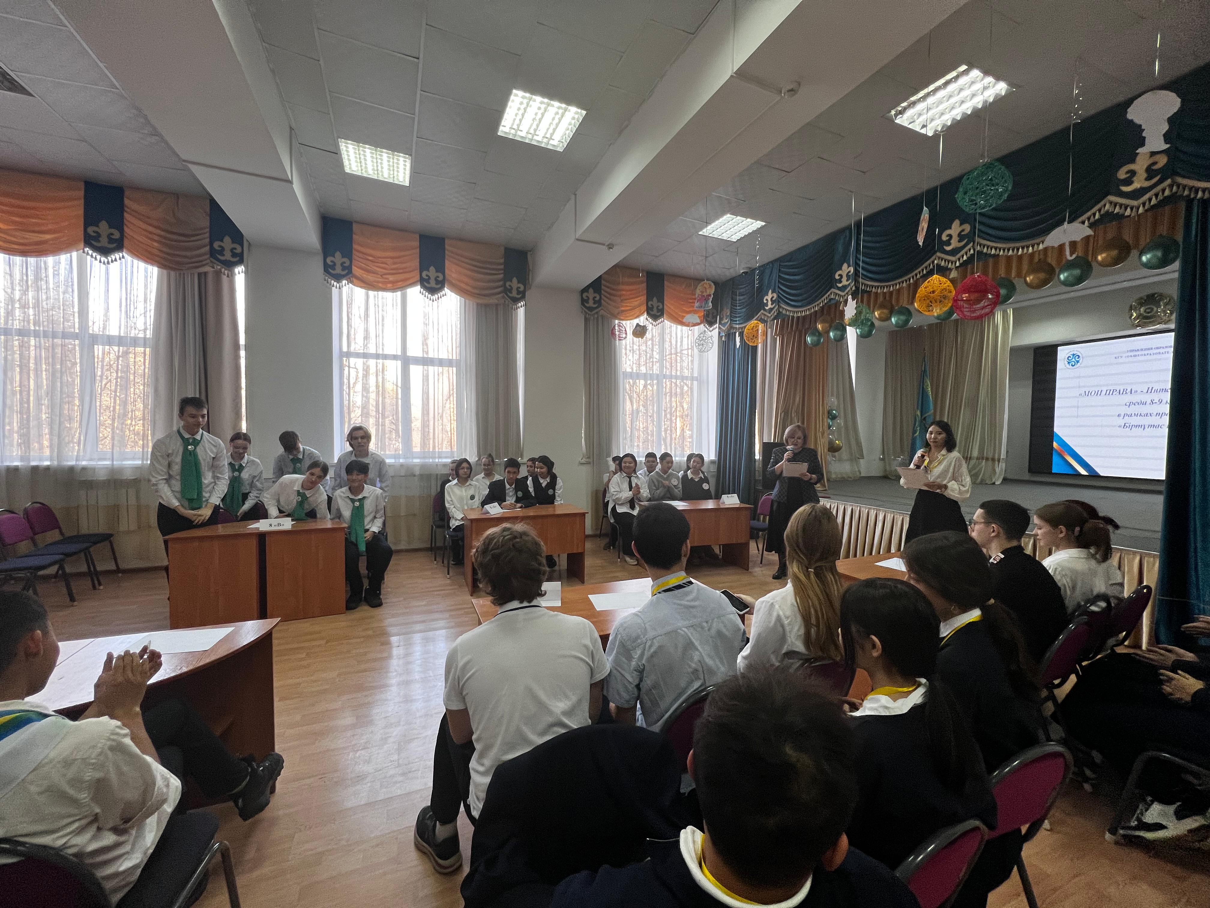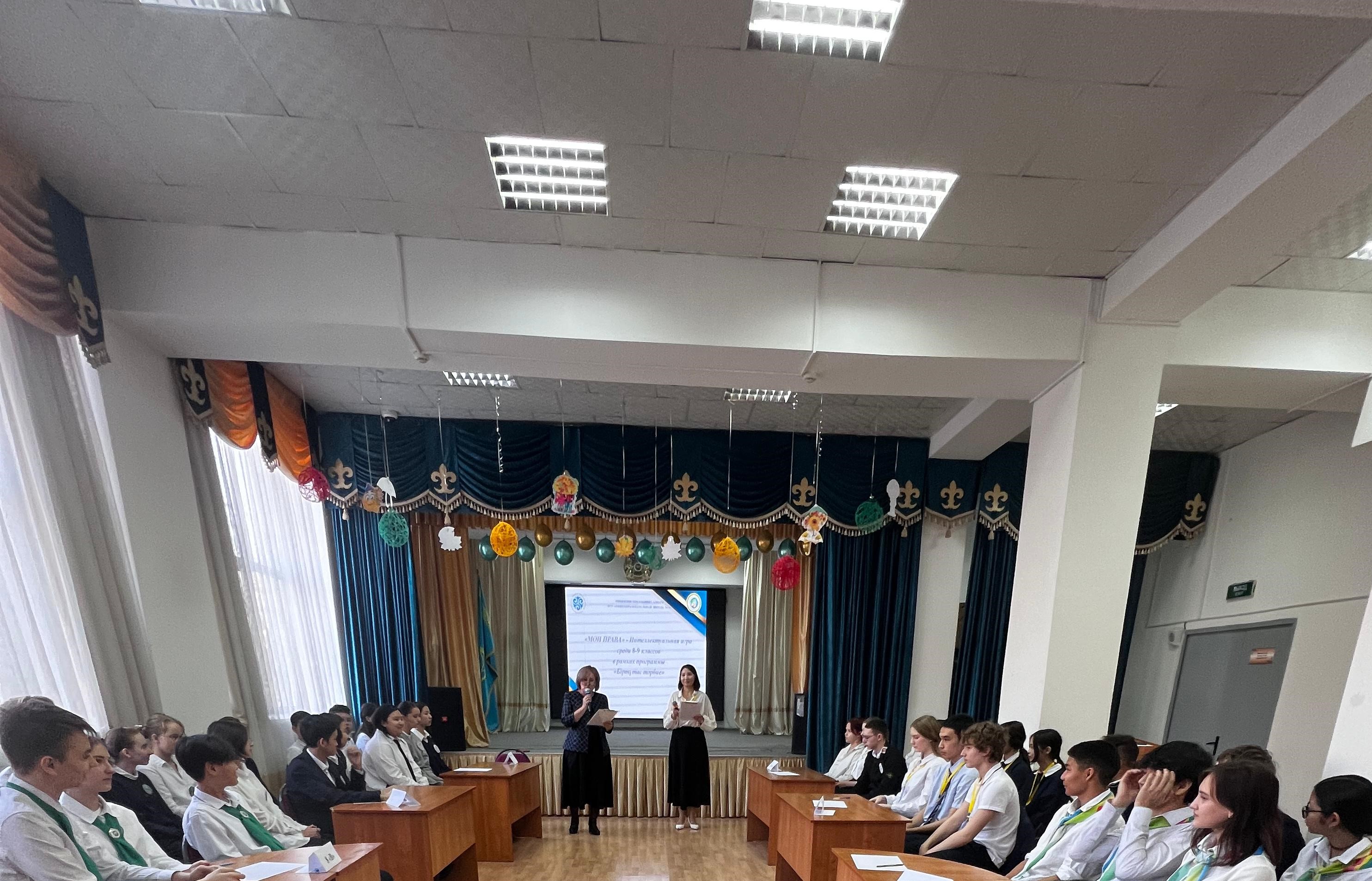 В нашей школе прошла увлекательная интеллектуальная игра «МОИ ПРАВА» среди 8-9 классов, организованная в рамках программы «Біртұтас тәрбие» и направления «Правовая грамотность и медиакультура».