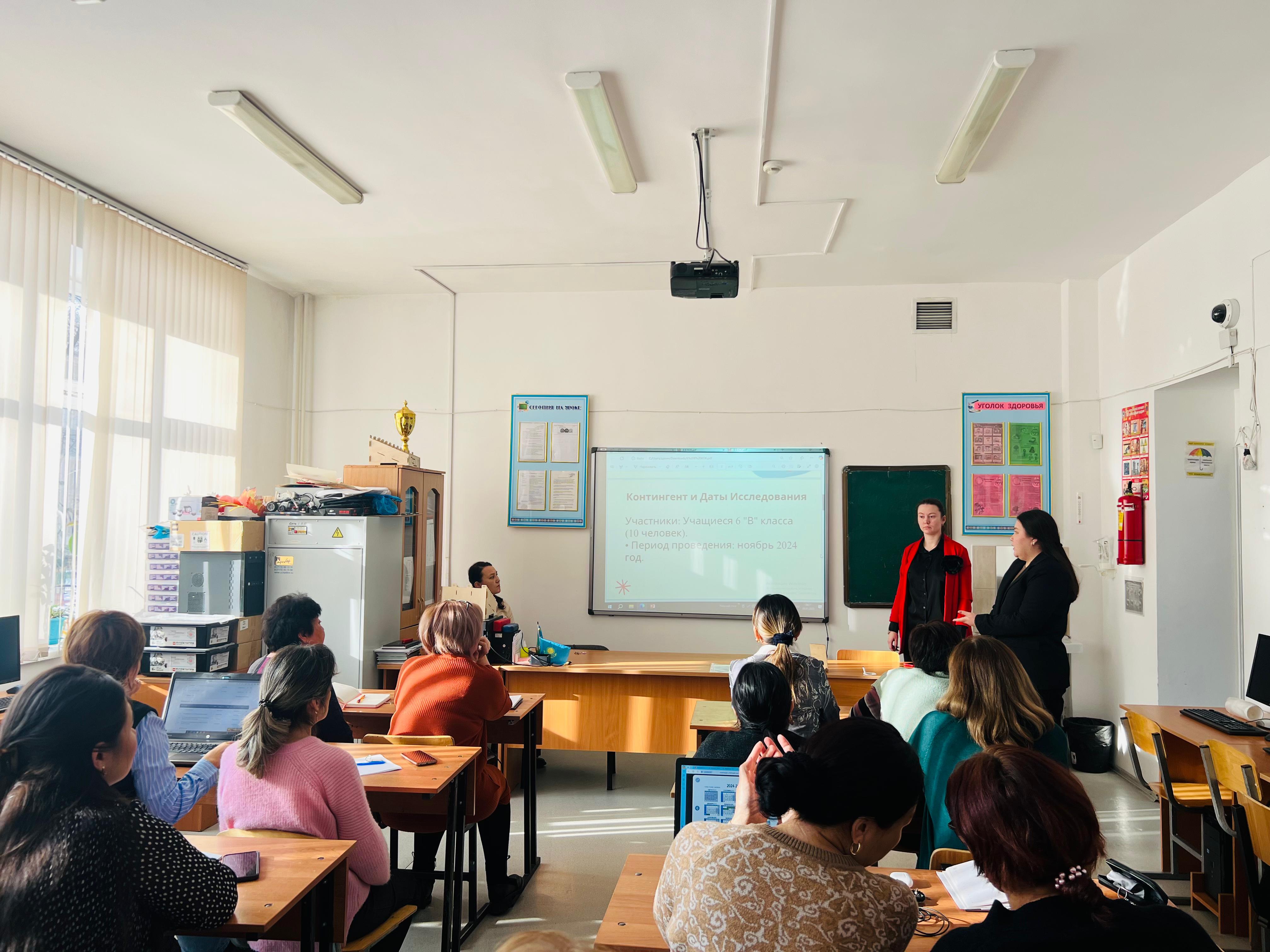 Бүгін №10 ЖББМ КММ- де "6в, 8в сыныптардағы сыныптық-жалпылама бақылау" тақырыбы бойынша мектептің әдістемелік кеңесінің отырысы өтті. Осы сыныптардың сынып жетекшілері Холова Н.А. және Рабилова Г. Ж. оқушылардың үлгерімі мен сабаққа қатысуына толық талдау жасады. Мектеп психологтары Я.И. Хазова мен Д. Т. Мамырханова оқушыларға сауалнама жүргізіп, пән мұғалімдері үшін жұмыс бағытын берді. Әдістемелік кеңес жұмыс және нәтижелі жағдайда өтті. Мектеп әкімшілігі оқушылармен білім сапасын арттыру және сабақтан қалуды азайту бойынша одан әрі жұмыс істеу үшін ұсыныстар берді.