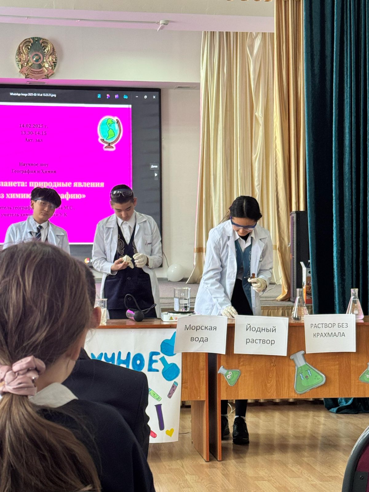 В рамках декады естественно-математических наук учащиеся 7 «А», 7 «Б» и 7 «В» классов приняли участие в увлекательном научном шоу, где химия и география объединились, чтобы раскрыть тайны природных явлений!
