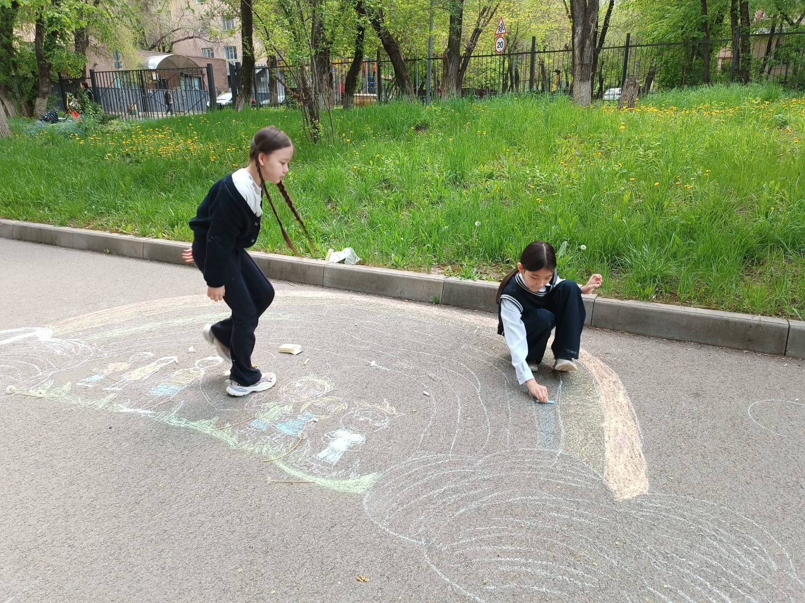 🌈 Под руководством учителей изобразительного искусства дети с радостью выразили через краски свою любовь к Родине, дружбе и миру. На асфальте ожили символы Казахстана, солнечные улыбки и разноцветные флаги, отражающие единство и многонациональное богатство нашей страны.