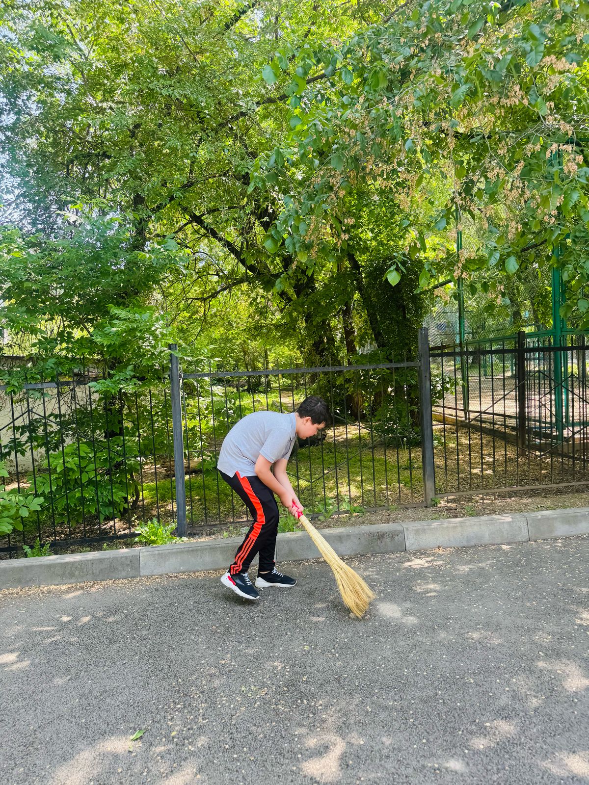 🌱 В уборке приняли участие учащиеся 5–8 классов, педагоги и технический персонал. Была задействована уборочная техника, использованы веники, совки, грабли, кисти для покраски. Проведены работы по побелке бордюров и покраске ограждений.