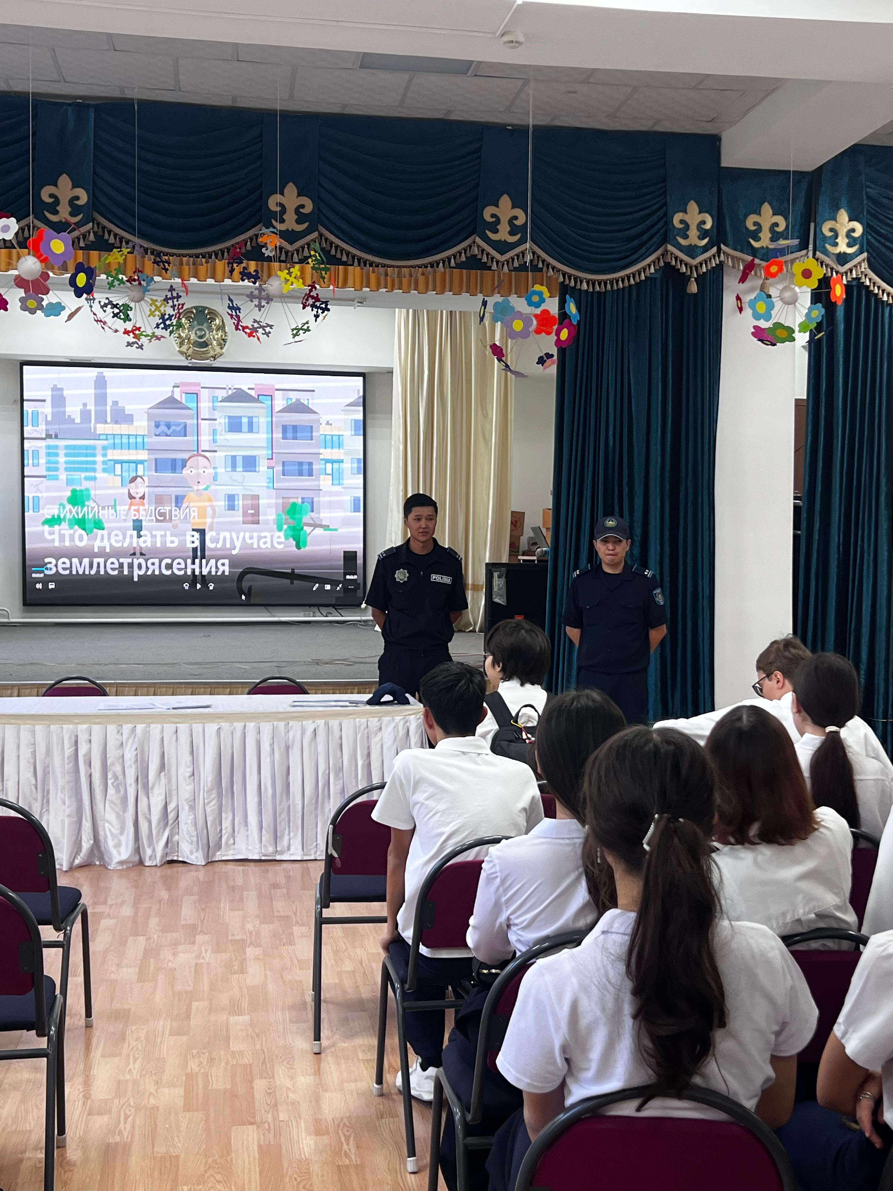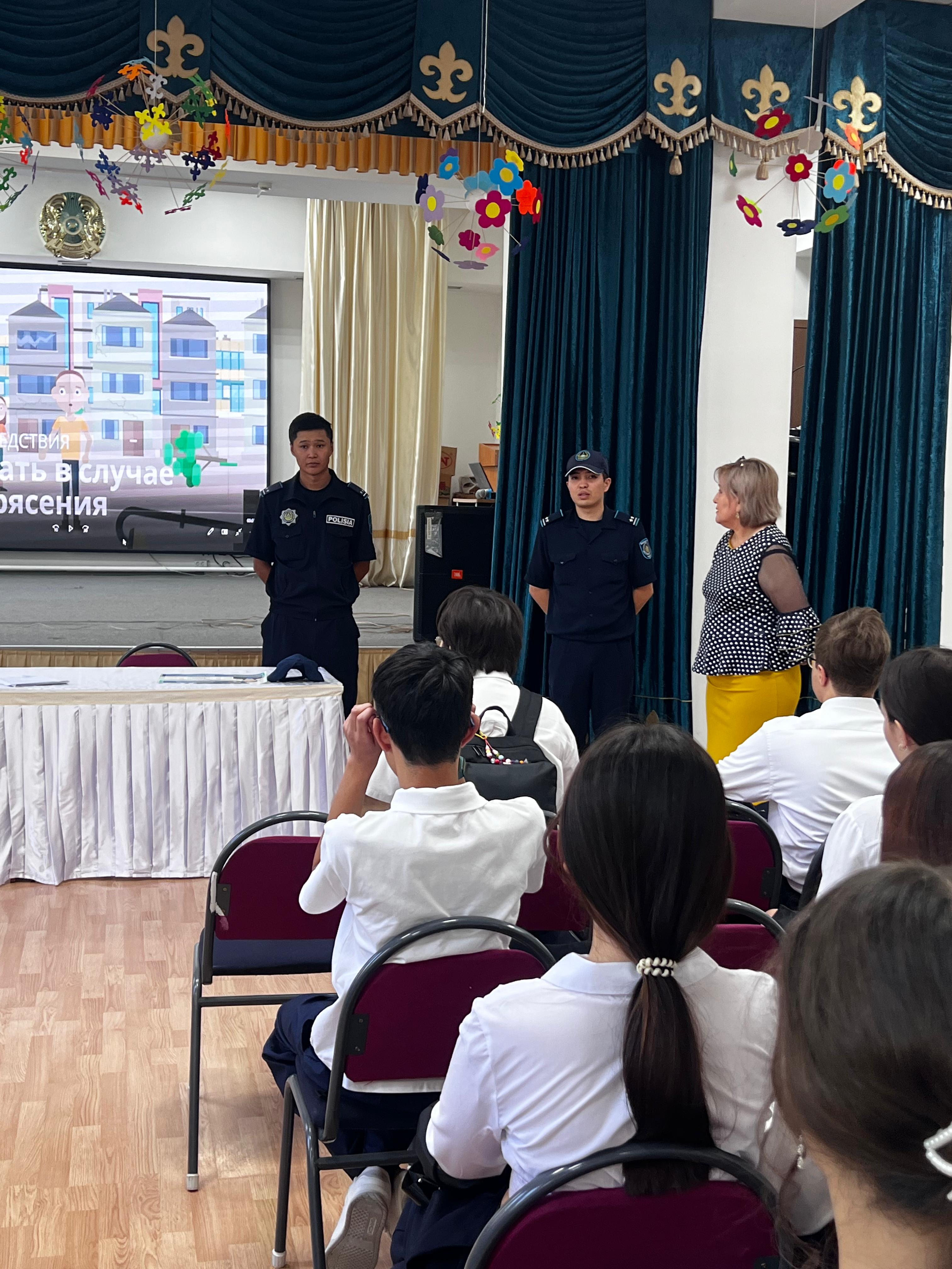 Её провели заместитель директора по ВР Мажитова К.Б. совместно с лейтенантом полиции Қадыржан Е. (УИП ОЮП ОМПС УП Бостандыкского района).