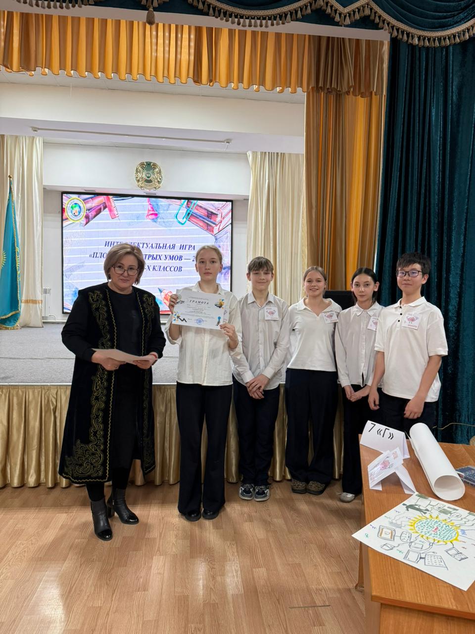 «Адал азамат» бағдарламасын іске асыру аясында 7-сынып оқушылары арасында «ҰШҚЫР ОЙЛАР АЛАҢЫ — 2026» интеллектуалдық ойын өткізілді. Ойынға 7 «А», 7 «Б», 7 «В», 7 «Г» сыныптарының командалары қатысты. Қатысушылар өздерінің білімге құштарлығын, ой-өрісін және ұжыммен жұмыс істеу қабілеттерін жоғары деңгейде көрсете білді. Тартысты сайыс нәтижесінде 7 «А» сыныбы жеңіске жетті 🎉 Жеңімпаздарды құттықтаймыз! Барлық қатысушыларға алдағы уақытта толағай табыс пен жаңа жетістіктер тілейміз!