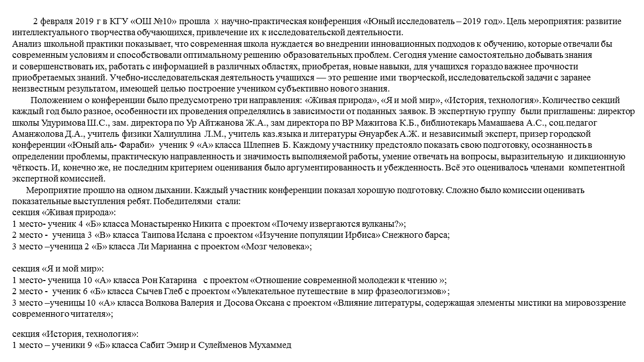 02 наурыз 2019 0 1 2 3 4 5 X научно-практическая конференция «Юный исследователь – 2019 год» Осы беттің QR-коды:QR-код этой страницы: