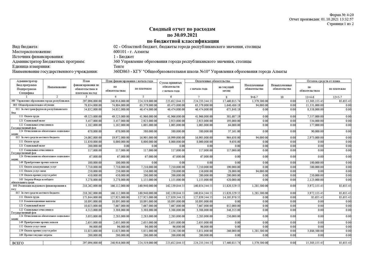 30 қыркүйек 2021 0 1 2 3 4 5 Шығыстар бойынша жиынтық есеп 30.09.2021ж. / Сводный отчет по расходам на 30.09.2021 Осы беттің QR-коды:QR-код этой страницы: